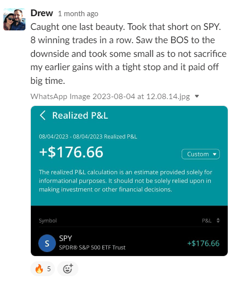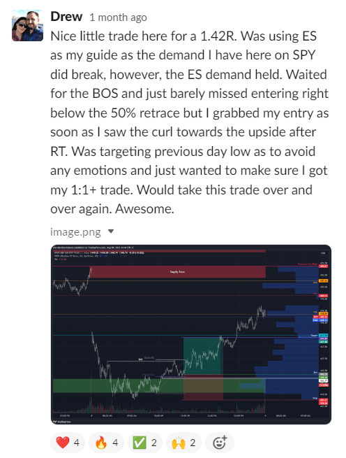 I joined and it has been hands down the best investment in myself that I've ever made! The huge strategy course taught me everything I needed to know about trading supply and demand, along with a few other things, and now the 1 on 1 calls help with the emotional side of trading and making sure that I am following the rules/strategy perfectly! The course helped me make my technicals perfect and now I am continuing to work 1 on 1 to perfect my fundamentals and become consistently profitable!”
