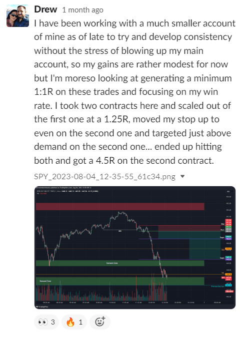 Since then, He has been absolutely crushing it and going hard in the scaling process, and excels at using various types of trading (Futures, Options, Complex Options) that we teach inside as well. Zack is currently trading at an extremely high level making consistently 10k per month, while also coaching others inside Freedom Team on how to do the same.
