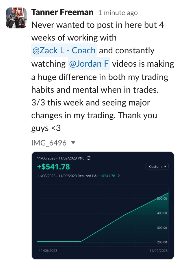 All of Zack’s trading prior to joining Freedom Team was from signal groups and alerts via live trading from various discords, telegrams and livestreams. Not only was he losing money, he was wasting his time because he wasn’t learning the reasoning behind his losses. He had no strategy and fully relied on others.